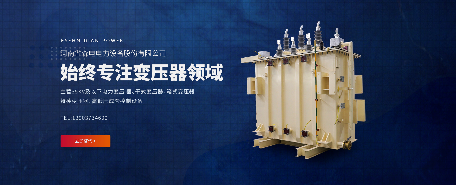 河南省森電電力設備股份有限公司位于河南省新鄉市大召營產業集聚區,是從事35KV及以下電力變壓 器、干式變壓器、箱式變壓器、特種變壓器和高低壓成套控制設備的**制造企業。